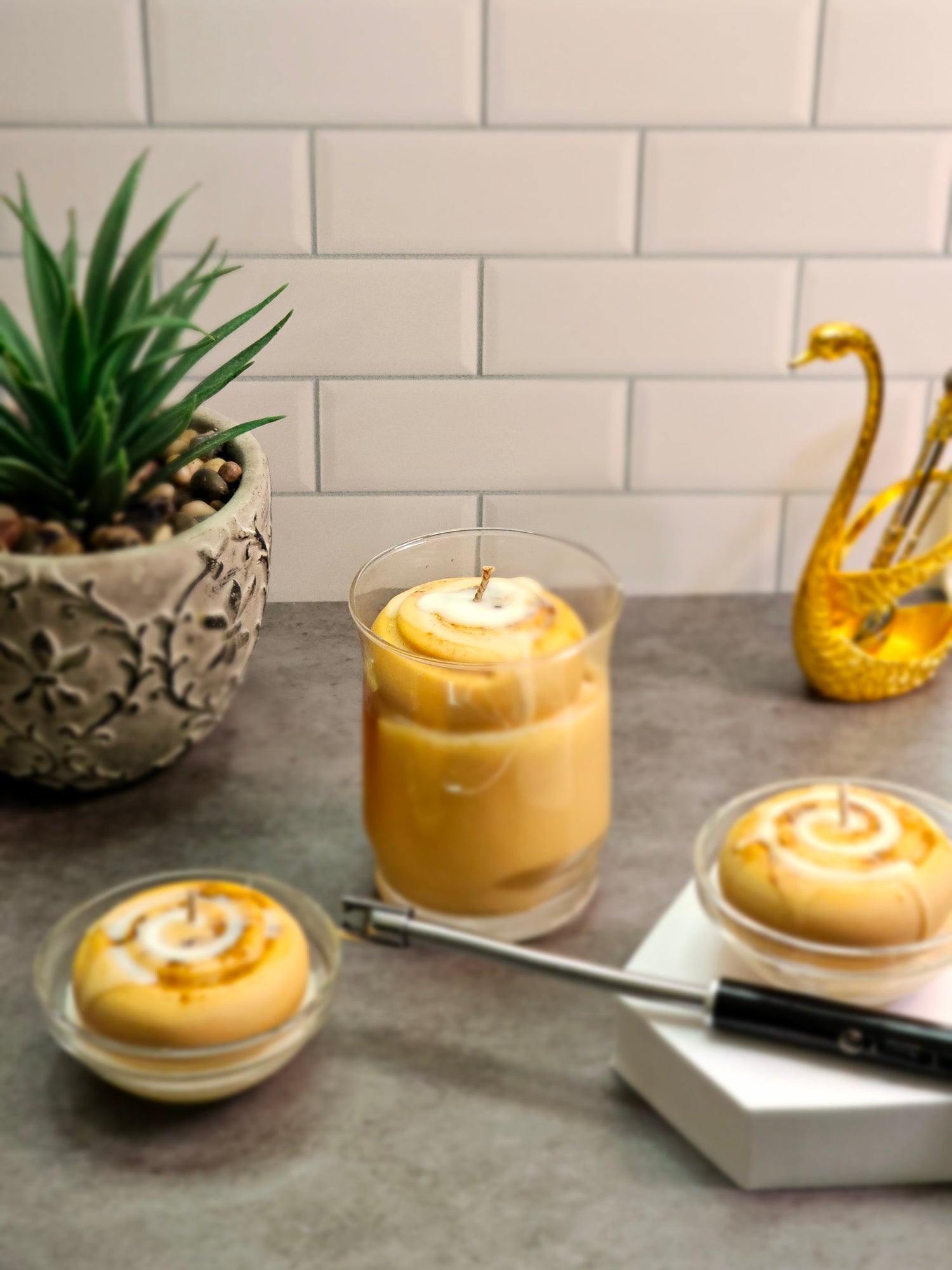 Embark on a sensory journey like no other with our exquisite collection of handcrafted candles meticulously designed to resemble your favorite desserts, drinks, and culinary delights. Each candle is a testament to quality craftsmanship, carefully made with a blend of premium ingredients to ensure a clean burn and long-lasting fragrance.